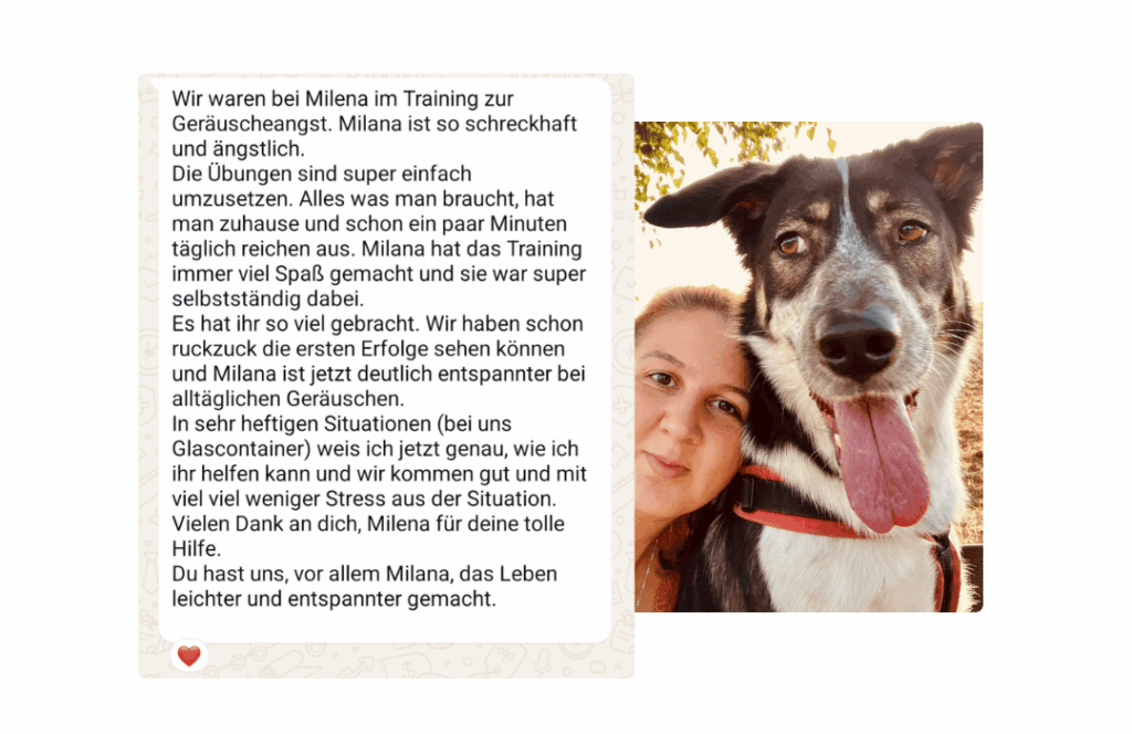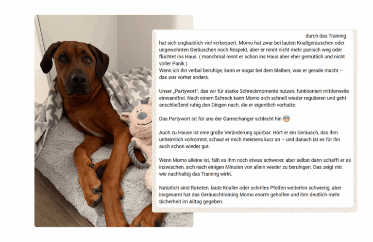 Ein bedürfnisorientiertes Trainingsprogramm für geräuschsensible Hunde. Fair, kleinschrittig, im Tempo deines Hundes. Lerne jetzt, wie du deinen Hund wirklich unterstützen kannst.