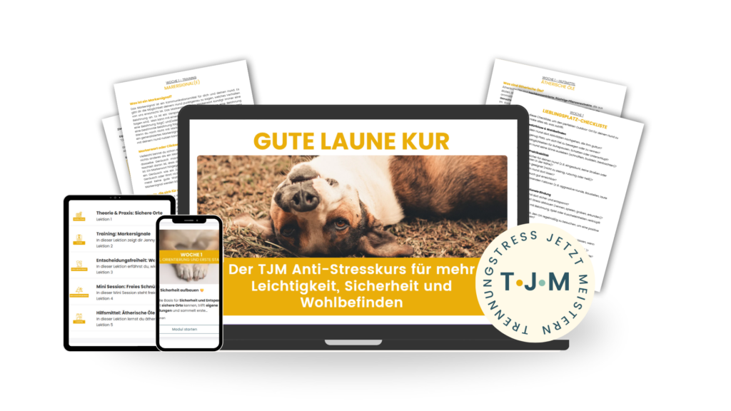 Die Gute Laune Kur ist die perfekte Vorbereitung für dich und deinen Hund, um in das Trainingsprogramm Mutig durch die laute Welt zu starten. Über 4 Wochen legst du mit deinem Hund die ideale Basis für den Trainingsstart. Du förderst das Wohlbefinden deines Hundes, kannst erste Übungen für mehr Sicherheit im Alltag umsetzen und stärkst eure Bindung. Am 08.02.2026 endet das Early Bird Special. Du kannst nach dem Bonuskurs in das Trainingsprogramm für geräuschsensible Hunde starten.